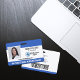 This modern ID Badge features a beautiful blue mesh, photo, logo and bar code.