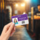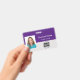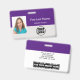 Create your own personalized employee name tags and badges using a vertical elegant modern template that is easy to add your own photo, company logo, Bar Code and other important information. A simple business design in purple and white & name and title with bar code. No minimum order.