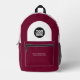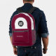 Easily personalize this professional backpack adding your company logo and a custom text. You can add business name, slogan, social media, website or any additional info, or delete it. A simple and modern design in WARM burgundy marsala cherry wine red and black featuring clear sans serif font, for a professional and edgy look, perfect as promotional gift for employee, customers, corporate celebrations, tradeshow. The backpack can be customized in any color and any font. No minimum.