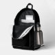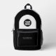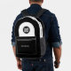 Easily personalize this professional backpack adding your company logo and a custom text. You can add business name, slogan, social media, website or any additional info, or delete it. A simple and modern design in black and white featuring clear sans serif font, for a professional and edgy look, perfect as promotional gift for employee, customers, corporate celebrations, tradeshow. The backpack can be customized in any color and any font. No minimum.