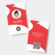 Easily personalize this Custom Business Creative Modern Blob Organic Shapes Employee Name Badge with Photo, Scan Qr Code or Scan Bar Code and business logo. A simple business design with round photo, in red and white colors fully customizable in front and back sizes, sans-serif basic and modern fonts and a professional and clear look. Avaiable with lanyard, metal clip or with retractable. No minimum order.