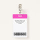 Easily personalize this Custom Administrative professional Name Badge without photo, featuring an easy copy and paste qr code template, Scan Bar Code and large business logo. A simple business design in neon pink and white colors fully customizable in front and back sizes, sans-serif basic and modern fonts and a professional and clear look, perfect for small business employee, boss, guests. These business id badges supplies are avaiable with lanyard, metal clip or with retractable. No minimum order, but save money and enjoy Zazzle discounts by multiple orders!