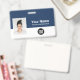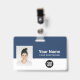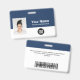 Easily personalize this Custom Employee Name Badge with Photo, Scan Bar Code and business logo, with lanyard included. A simple business design in navy blue and white colors fully customizable in front and back sizes, sans-serif basic and modern fonts and a professional and clear look. Avaiable with or without lanyard, metal clip or with retractable. No minimum order.
