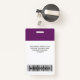 Easily personalize this Violet Custom Employee Name Badge with Photo, Scan Bar Code and business logo. A simple business design in violet and white standard colors fully customizable in front and back sizes, sans-serif basic and modern fonts and a professional and clear look. Avaiable with lanyard, metal clip or with retractable. No minimum order.