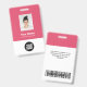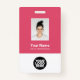 Easily personalize this vibrant fuchsia raspberry pink Custom Employee Name Badge with Photo, Scan Bar Code and business logo. A simple business design in girly cute fuchsia pink and white standard colors fully customizable in front and back sizes, sans-serif basic and modern fonts and a professional and clear look. Avaiable with lanyard, metal clip or with retractable. No minimum order.