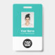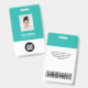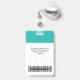 Easily personalize this Light Blue Turquoise Custom Employee Name Badge with Photo, Scan Bar Code and business logo. A simple business design in fresh teal turquoise and white standard colors fully customizable in front and back sizes, sans-serif basic and modern fonts and a professional and clear look. Avaiable with lanyard, metal clip or with retractable. No minimum order.