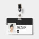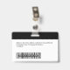 Easily personalize this Custom Employee Name Badge with Photo, Scan Bar Code and business logo, with metal clip included. A simple business design left-aligned in black and white colors fully customizable in front and back sizes, sans-serif basic and modern fonts and a professional and clear look. Avaiable with or without lanyard, metal clip or with retractable. No minimum order.
