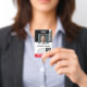 Red, White and Black - A basic business design that highlights your office logos and employee name. You can add a scan bar code on the front and back. You can also change the color of the background. This traditional office design also includes a badge ID number, expiration date and a place to add information if the badge is lost.