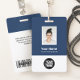 Easily personalize this Custom Employee Name Badge with Photo, Scan Bar Code and business logo. A simple business design in navy blue and white colors fully customizable in front and back sizes, sans-serif basic and modern fonts and a professional and clear look. Avaiable with lanyard, metal clip or with retractable. No minimum order.