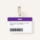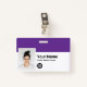 Easily personalize this Custom Employee Name Badge with Photo, Scan Bar Code and business logo, with metal clip included. A simple business design left-aligned in deep purple and white colors fully customizable in front and back sizes, sans-serif basic and modern fonts and a professional and clear look. Avaiable with or without lanyard, metal clip or with retractable. No minimum order.