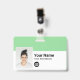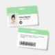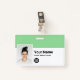 Easily personalize this Custom Employee Name Badge with Photo, Scan Bar Code and business logo, with metal clip included. A simple business design left-aligned in green and white colors fully customizable in front and back sizes, sans-serif basic and modern fonts and a professional and clear look. Avaiable with or without lanyard, metal clip or with retractable. No minimum order.