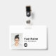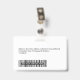 Easily personalize this Custom Employee Name Badge with Photo, Scan Bar Code and business logo, with metal clip included. A simple business design left-aligned in black and white colors fully customizable in front and back sizes, sans-serif basic and modern fonts and a professional and clear look. Avaiable with or without lanyard, metal clip or with retractable. No minimum order.