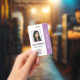 Custom Employee Photo, Bar Code, Logo, Name Purple Badge