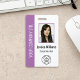 Custom Employee Photo, Bar Code, Logo, Name Purple Badge