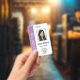 Custom Employee Photo, Bar Code, Logo, Name Purple Badge