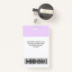 Easily personalize this lavender light purple Custom Employee Name Badge with Photo, Scan Bar Code and business logo. A simple business design in fresh pastel lavender light purple and white standard colors fully customizable in front and back sizes, sans-serif basic and modern fonts and a professional and clear look. Avaiable with lanyard, metal clip or with retractable. No minimum order.