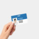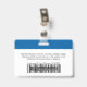 Easily personalize this Custom Horizontal Employee ID company Name Badge with Photo, Scan Bar Code or Qr code and business logo. A simple and clean business design in modern blue and white colors fully customizable in front and back sizes, sans-serif basic and modern fonts and a professional and clear look. These standard security id name tags badges are avaiable with lanyard, metal clip or with retractable. You can personalize your id badge cards choosing any background color and any font style with Graphic Design editor by clicking on customize further. No minimum order.