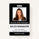 Custom photo ID badges feature your employee's photo, name, job title, and ID number, as well as the business name. You can also include a corporate department if you like. Perfect for any profession. On the back you can add more information, such as where to return the badge if it gets lost. Customize it with a photo and custom text in the sidebar. The square photo has a thin white border on a black background. A white band near the bottom highlights the job title, ID number, and expiration date in black text. The staff person's name and business text is white on black.