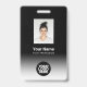 Easily personalize this Custom Employee Name Badge with Photo, Scan Bar Code and business logo featuring a white ombre gradient on background color. A simple business design in black and white colors fully customizable in front and back sizes, sans-serif basic and modern fonts and a professional and clear look. Avaiable with lanyard, metal clip or with retractable. No minimum order.
