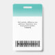 Easily personalize this Custom Employee Name Badge with Photo, Scan Bar Code and business logo featuring a white ombre gradient on background color. A simple personalized security id name tags business design in colorful vibrant turquoise blue and white colors fully customizable in front and back sizes, sans-serif basic and modern fonts and a professional and clear look. The id badges are avaiable with lanyard, metal clip or with retractable. No minimum order.