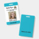 Customize your employee's Photo ID badges. Or customize a badge for the owner or manager of the property Photo, company, logo, name, department/division/title, address and email. Employee ID on the back side - which can be customized or deleted. Crisp black text on white background with teal blue colored strip at the top. Every detail can be customized. Matching business cards available.
