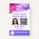 Great for any care worker, in-home care business or self-employed person. Easily edit this template to upload your own ID Photo, QR Code and personal info. Plus 'kindly return' information on the back. Unique abstract art with watercolor shades in pink, purple and gold. Custom Employee Photo ID Vaccination QR Code Badge.