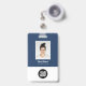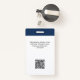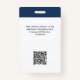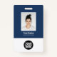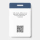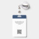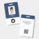 Easily personalize this Custom Employee Name Badge with Photo, Qr Code and business logo. A simple business design in navy blue and white colors fully customizable in front and back sizes, sans-serif basic and modern fonts and a professional and clear look. Avaiable with lanyard, metal clip or with retractable. No minimum order.