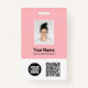 Easily personalize this Custom Employee Name Badge with Photo, Scan QrCode and Bar Code and business logo. A simple business design in cute feminine blush pink and white colors fully customizable in front and back sizes, sans-serif basic and modern fonts and a professional and clear look. Avaiable with lanyard, metal clip or with retractable. No minimum order.