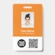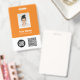 Easily personalize this Custom Employee Name Badge with Photo, Scan QrCode and Bar Code and business logo. A simple business design in boho bright orange and white colors fully customizable in front and back sizes, sans-serif basic and modern fonts and a professional and clear look. Avaiable with lanyard, metal clip or with retractable. No minimum order.