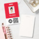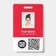 Easily personalize this Custom Employee Name Badge with Photo, Scan QrCode and Bar Code and business logo. A simple business design in eyecatching bold fire red and white colors fully customizable in front and back sizes, sans-serif basic and modern fonts and a professional and clear look. Avaiable with lanyard, metal clip or with retractable. No minimum order.