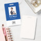 Easily personalize this Custom Employee Name Badge with Photo, Scan QR Code and business logo. A simple business design in navy blue and white colors fully customizable in front and back sizes, sans-serif basic and modern fonts and a professional and clear look. Avaiable with lanyard, metal clip or with retractable. No minimum order.