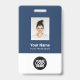 Easily personalize this Custom Employee Name Badge with Photo, Scan Qr Code (always readable, it works!) and business logo. A simple business design in navy blue and white colors fully customizable in front and back sizes, sans-serif basic and modern fonts and a professional and clear look. Avaiable with lanyard, metal clip or with retractable. No minimum order.