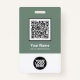 Easily personalize this Custom Employee Name Badge with or without Photo, Qr Code, Scan Bar Code and business logo. A simple business design in sage green and white colors fully customizable in front and back sizes, sans-serif basic and modern fonts and a professional and clear look. Avaiable with lanyard, metal clip or with retractable. No minimum order.