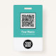 Easily personalize this Custom Employee Name Badge with or without Photo, Qr Code, Scan Bar Code and business logo. A simple business design in light blue turquoise and white colors fully customizable in front and back sizes, sans-serif basic and modern fonts and a professional and clear look. Avaiable with lanyard, metal clip or with retractable. No minimum order.