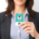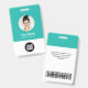Easily personalize this Custom Employee Name Badge with Round Profile id Photo, Scan Bar Code and business logo. A simple business design in turquoise light blue and white colors fully customizable in front and back sizes, sans-serif basic and modern fonts and a professional and clear look. Avaiable with lanyard, metal clip or with retractable. No minimum order.