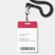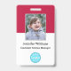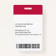 Create your own custom, personalized, durable PVC plastic, won't fade or tear, cool modern trendy chic stylish maroon and white, name photo ID badge, with choice of attachments - lanyard, metal clip, retractable, or none. To personalize, enter the name of the employee / staff / executive, their designation, and any additional information like employee ID, issue & expiry date of the badge, if lost return to & the address, etc. Next add the photo of the employee / staff / executive, add the business / company logo, and add the barcode. While you type/design, you'll be able to see a preview of your badge, throughout. Great for small business, corporate, school, restaurant, office, concert, retail, hospital, clinic, and for employee, staff, doctor, teacher, student.