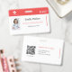This clean and minimal medical ID card design features a bold red header, editable name, job title, photo, and QR code—ideal for hospitals, EMS teams, clinics, and healthcare organizations.