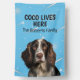 Unveil your love for your furry friend with our exclusive English Springer Spaniel Pride House Flag. Gracefully illustrated, this flag features a picture of a poodle, exuding both elegance and charm. Paired with the playful text "Coco Lives Here… Available for Treats!", it's an endearing blend of sophistication and humor.