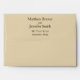 Use this custom envelope in place of the generic white envelopes that come standard with all of the cards and invitations in the Floral Damask II Wedding Set. This ecru and cream envelope includes a pre-printed return address on the back and a damask pattern on the inside. The default size is 7 1/4" W x 5 1/8 H (A7) and fits the 5x7 greeting cards and invitations. You can choose a different size by selecting "customize it" and "Choose your paper type and color". A7 fits 5x7 invitations and cards. A6 is for the small invitation, but will also fit the small greeting card (note card). A2 is for the small greeting card (note card), but will also fit the small invitation. We also offer this wedding envelope design without the printed address if you would rather write your own or use address labels.