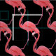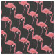 Fabric shown in a tropical pink flamingo print on a black background color.
