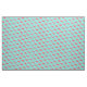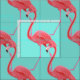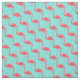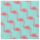 Fabric shown in a tropical pink flamingo print on a aqua background color.