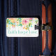 A beautiful floral watercolor luggage tag featuring an excerpt from 1 Corinthians 13:13 "faith hope love" and bright floral hand painted watercolor designs. Customizable with your name and contact info. This luggage tag with a leather tie makes a great gift!