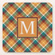 Custom Fall Pumpkin Orange Leaves Green Plaid Square Paper Coaster