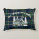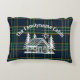 Bring cabin coziness to your sofa or bed with this custom throw pillow. Featuring a hand-drawn log cabin with pine trees and sunshine over classic green-and-blue tartan plaid, it’s a charming decorative piece for a rustic lodge, mountain getaway, or woodland home. Personalize with your family name for the perfect snuggle-worthy gift or stylish accent.