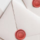 Before the wax hardens, gently and evenly press the wax seal stamp into the melted wax, ensuring it's centered.