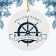 Custom Family Cruise Ship Nautical Wheel Monogram Ceramic Ornament