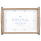 Serve up breezy coastal charm with this personalized beach house tray featuring a delicate dotted seashell border and custom text for your family name and location. Designed in a fresh blue-and-white palette, this tray adds a polished nautical touch to any summer home or seaside kitchen. Perfect for breakfast in bed, poolside cocktails, or staging your vacation rental with style. A thoughtful gift for coastal weddings, summer hosts, or new beach house owners.