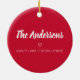 Custom Family Name Let It Snow Christmas Red Ceramic Ornament