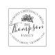 Simple outline art circle arc family name with outline drawing of mistletoe return address rubber stamp. Personalize with your own address and family name, ideal to stamp Christmas postings. Original mistletoe sprig outline drawing and design by Sarah Trett. www.sarahtrett.com for www.mylittleeden.com on zazzle.