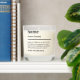 Dicitonary Style custom home sweet home definition scented candle in modern black typography with your family name below and your family members names on the back in trendy calligraphy. Use the text boxes to put your custom names, clicking on "Personalize it". Makes the perfect personalized gift for new home owners house warming, Christmas, birthday or a nice detail for Mother's day. But also a soulful addition for your own living room.